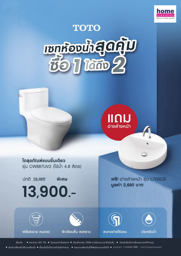 TOTO เซ็ทห้องน้ำสุดคุ้ม ซื้อ 1 ได้ถึง 2