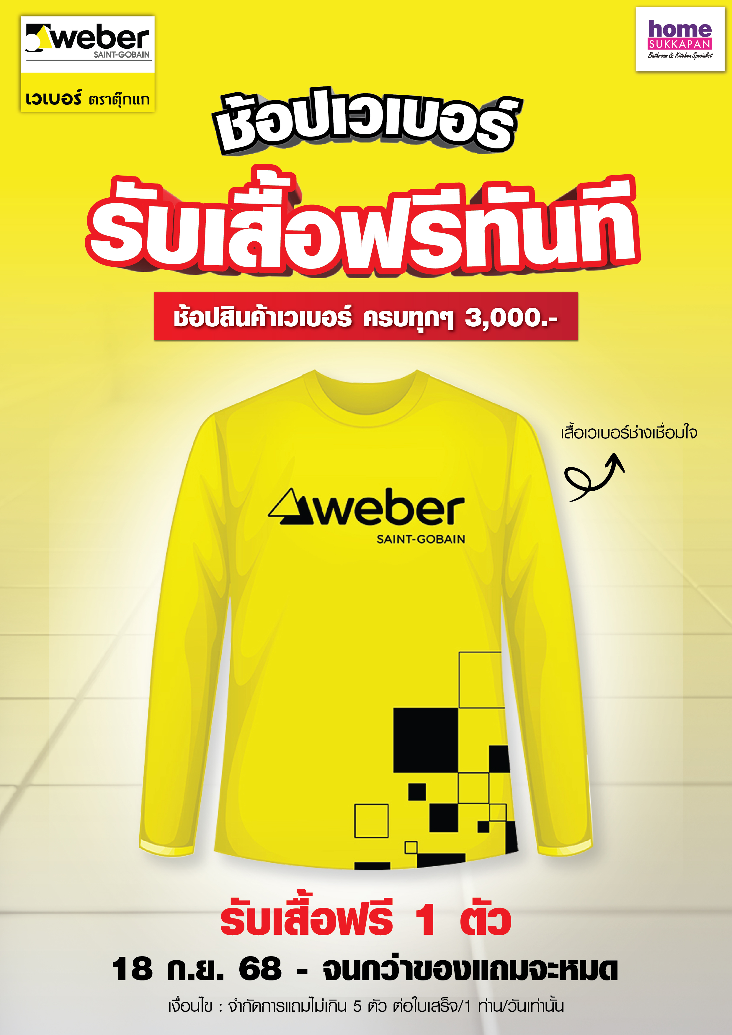 - ช้อปสินค้าเวเบอร์ ทุกกลุ่ม ครบทุกๆ 3,000 บาท แถมฟรี เสื้อ WEBER ช่างเชื่อมใจ 1 ตัว