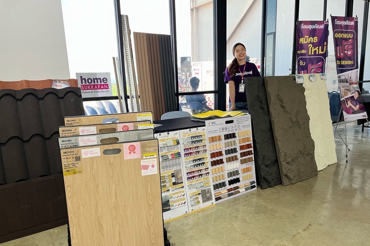 โฮมสุขภัณฑ์ได้นำสินค้า House Brand และสินค้าใหม่ขายดี มาแสดงภายในงาน อาทิ หลังคาเหล็กเคลือบเซรามิค ,PU โฟม แผ่นตกแต่งผนัง ,กระเบื้องยาง SPC ,ระแนงตกแต่ง มีลูกค้าให้ความสนใจและเข้ามาสอบถามสินค้าเป็นอย่างมาก
