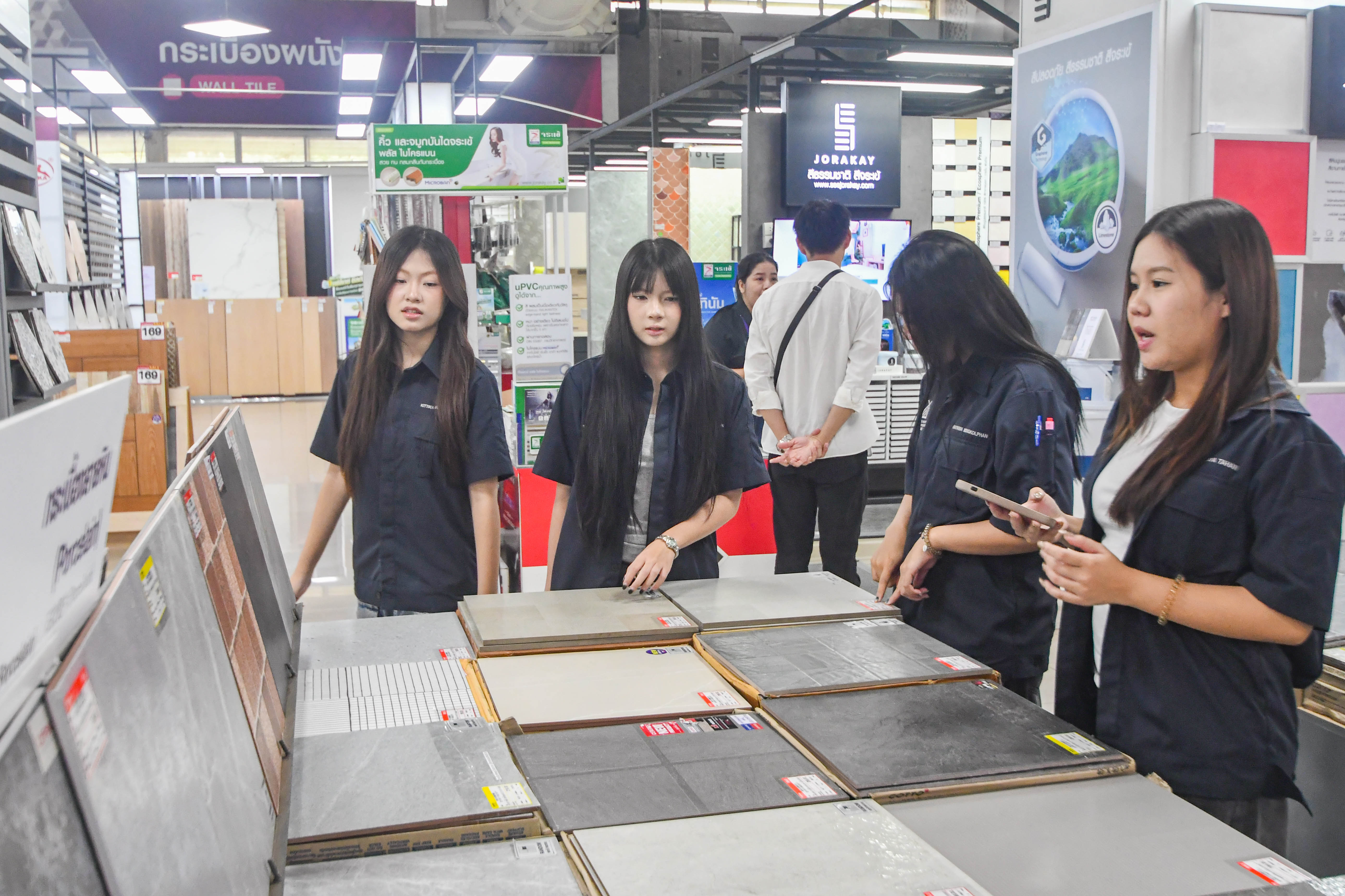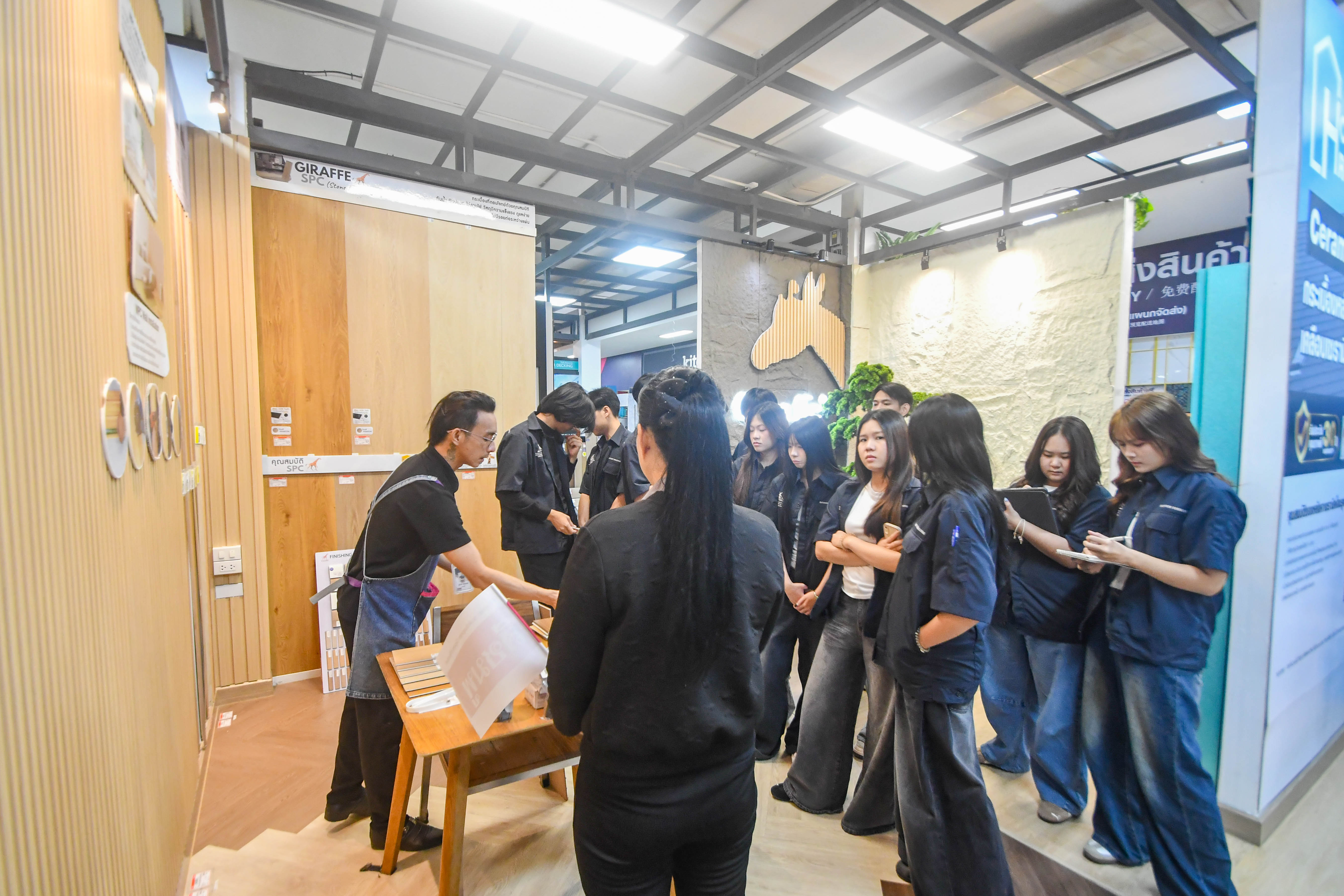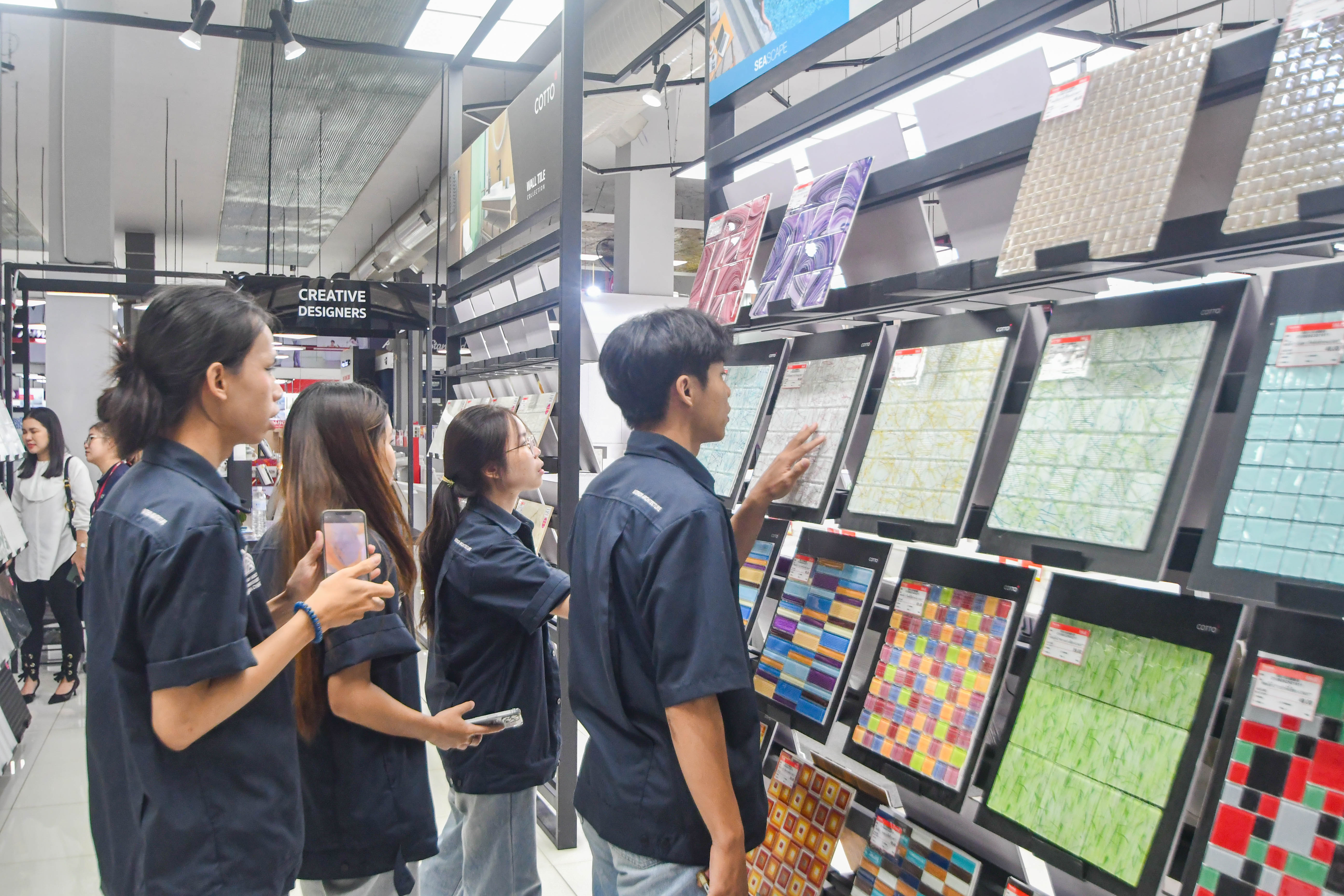 ตลอดระยะเวลาการเยี่ยมชมและศึกษาดูงานในครั้งนี้ น้องๆนักศึกษาได้มีโอกาสเรียนรู้เกี่ยวกับตัวสินค้า อาทิ วัสดุ การผลิตการใช้งานของสินค้าแต่ละประเภท รวมถึงการเลือกใช้วัสดุที่หลากหลายที่เหมาะสมกับการออกแบบแต่ละประเภท โดยวิทยากรผู้เชี่ยวชาญจาก โฮมสุขภัณฑ์ ได้ให้ความรู้และคำแนะนำอย่างละเอียด อาทิ ทำความรู้จักกลุ่มกระเบื้องและสุขภัณฑ์ สัมผัสเทคโนโลยีและสินค้าจริง การเลือกใช้วัสดุ เรียนรู้คุณสมบัติของวัสดุชนิดต่างๆ และการนำไปประยุกต์ใช้ในการออกแบบแนวคิดการออกแบบห้องน้ำห้องครัว เรียนรู้แนวคิดการออกแบบที่คำนึงถึงความต้องการและการใช้งานจริง