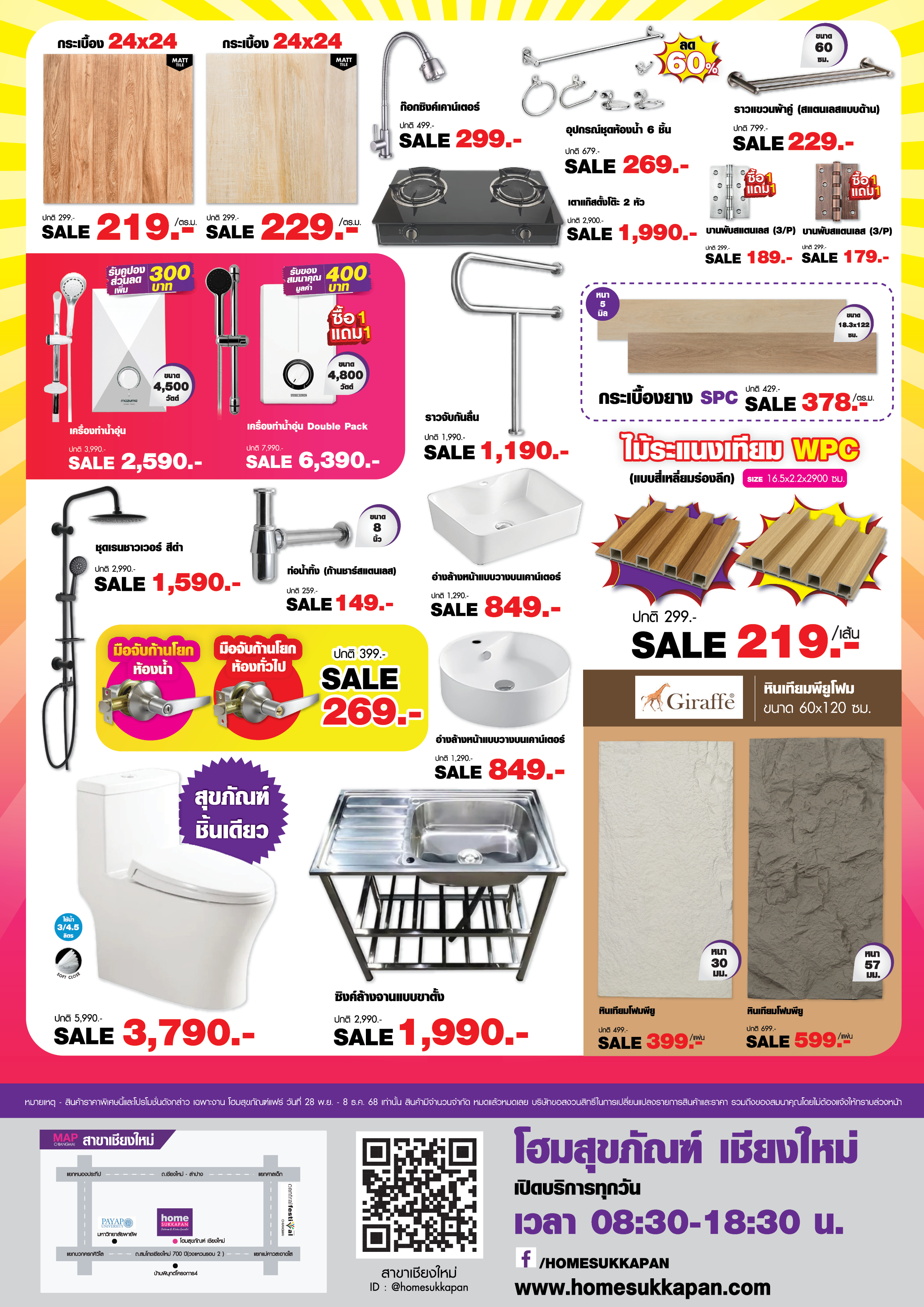 ที่โฮมสุขภัณฑ์ (หลัง ม.พายัพ) เปิดบริการ 08.30 – 18.30 น. โทร.053-126000-3