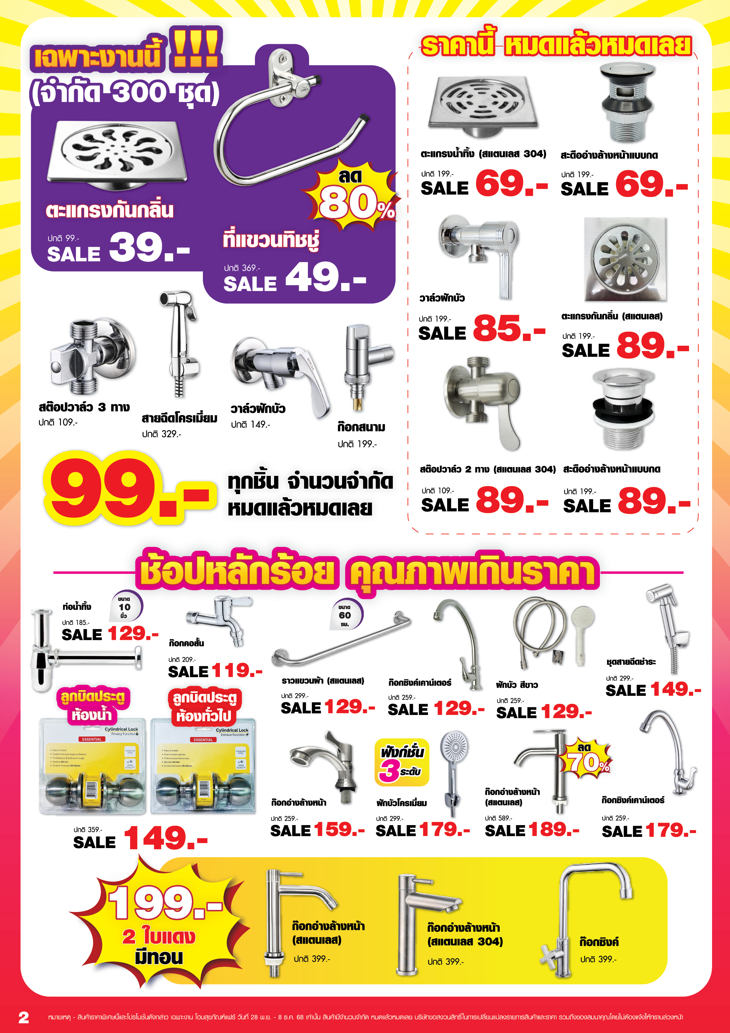 สินค้ากระเบื้อง สุขภัณฑ์ อุปกรณ์ห้องน้ำ ห้องครัว ก๊อกน้ำ ฝักบัว สุขภัณฑ์ เครื่องทำน้ำอุ่น เครื่องใช้ไฟฟ้า และอื่น ๆ รวมกว่า 1,500 รายการ จาก 21 แบรนด์ชั้นนำ
