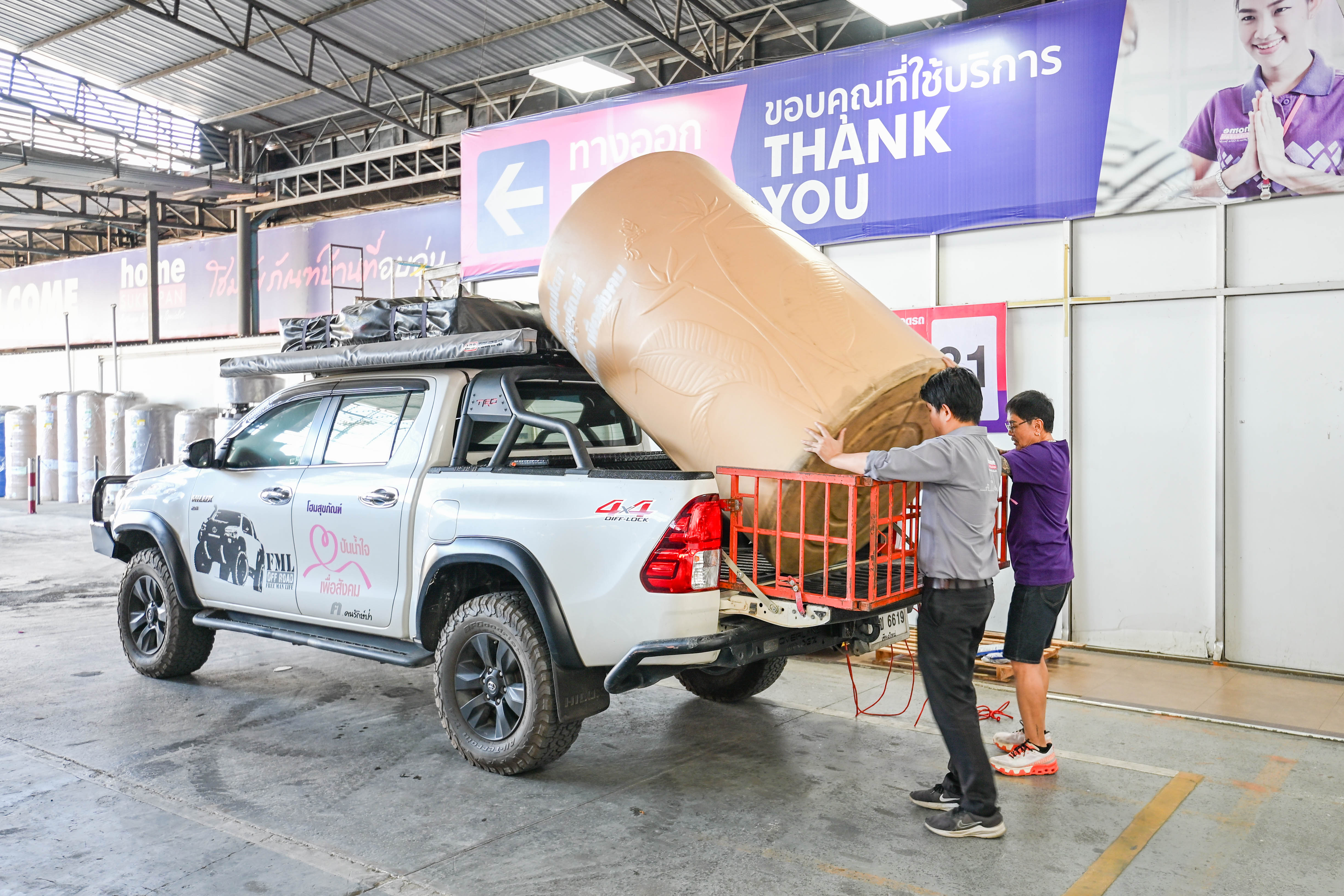 บริษัท โฮม สุขภัณฑ์ จำกัด (มหาชน) ร่วมมอบ ถังเก็บน้ำ ขนาด 2,000 ลิตร จำนวน 1 ถัง ให้แก่ศูนย์การเรียนชุมชนชาวไทยภูเขา แม่ฟ้าหลวง บ้านป่าหญ้าไทร ตั้งอยู่ที่ ต.ทุ่งหลวง อ.พร้าว จ.เชียงใหม่ มีความต้องการใช้ถังเก็บน้ำเพื่อสำรองน้ำใช้ในการทำกิจวัตรประจำวันสำหรับนักเรียนและบุคลากร