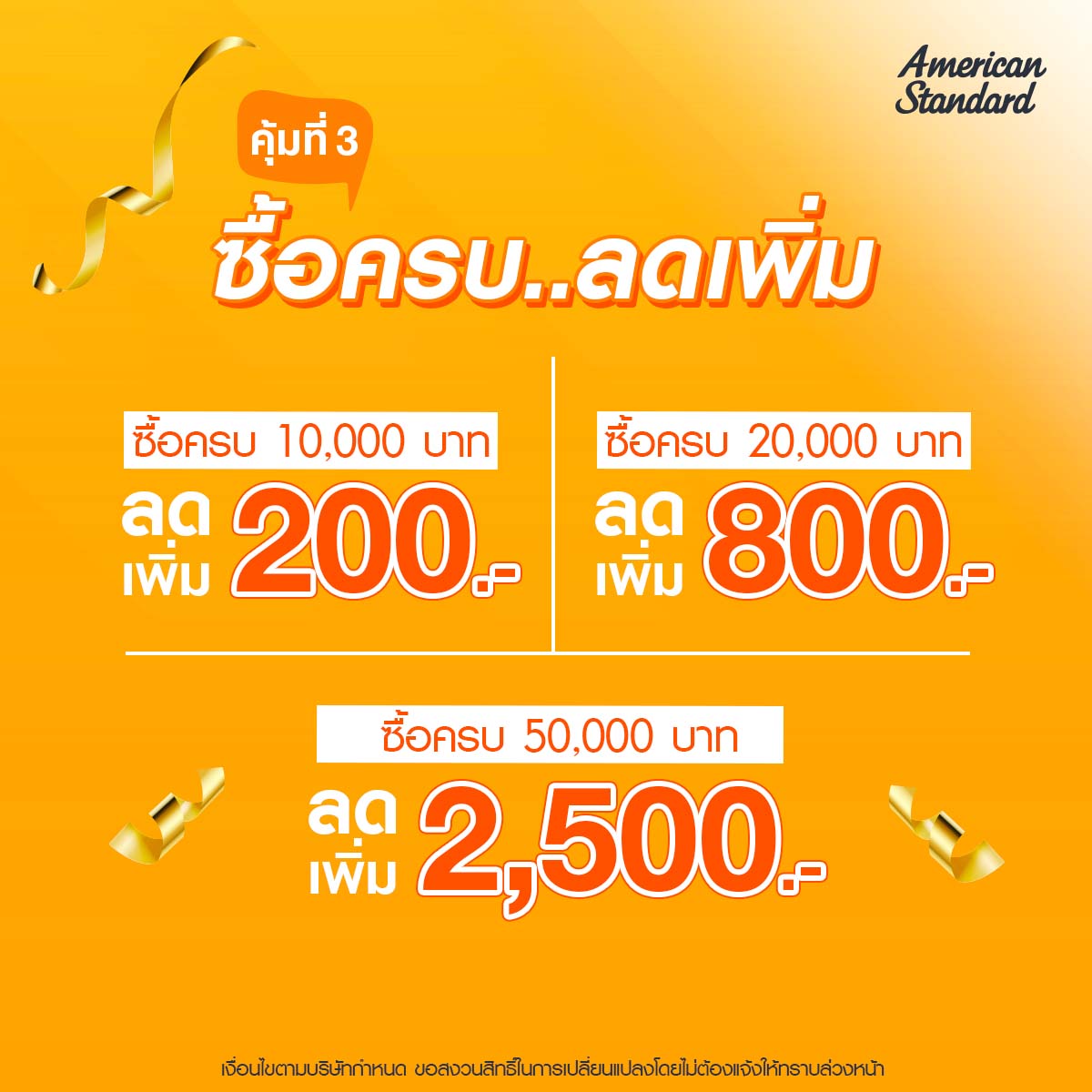 คุ้มที่ 3 ซื้อครบ ลดเพิ่ม สูงสุด 2,500 บาท เมื่อยอดซื้อแบรนด์อเมริกันสแตนดาร์ดและไอดีล
