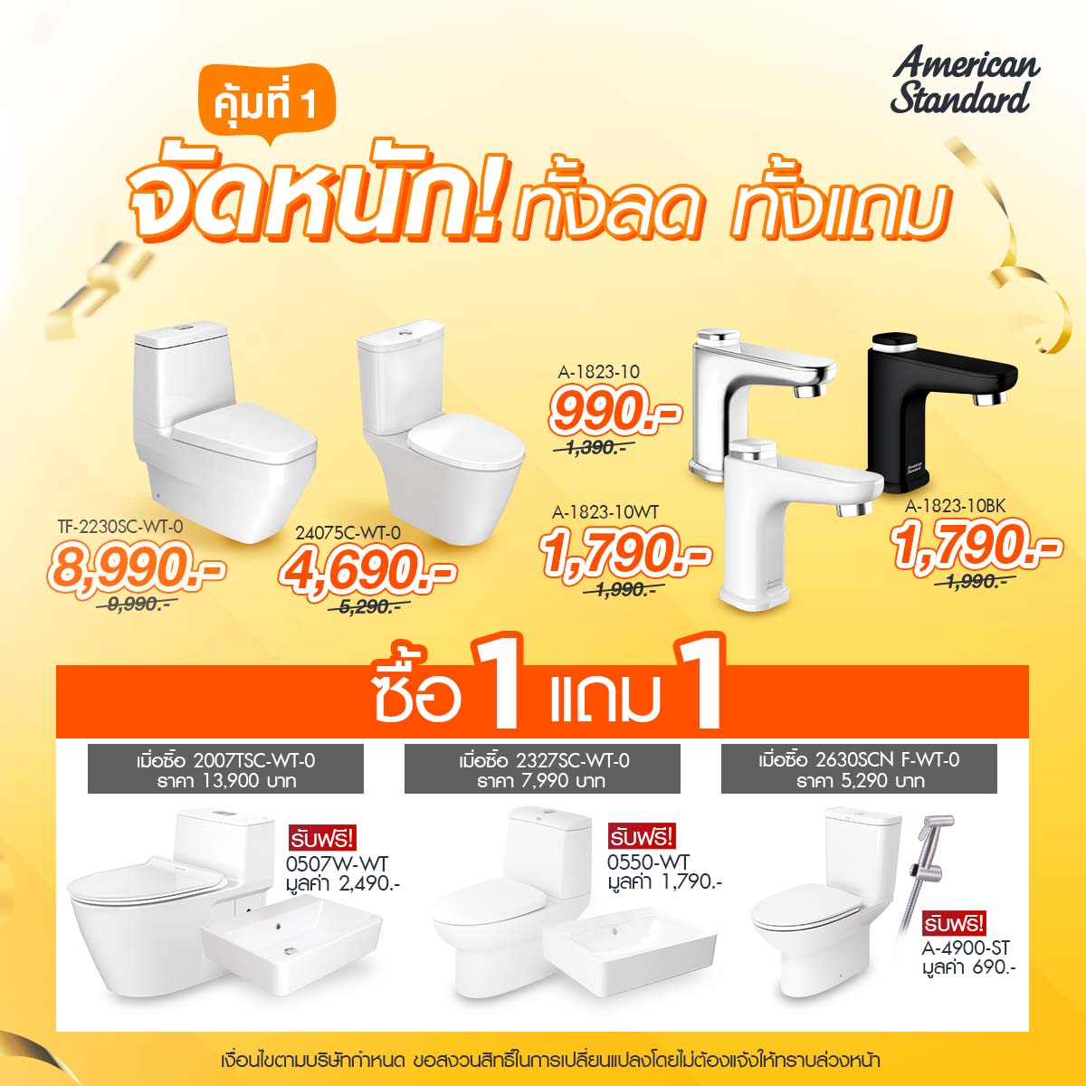 ซื้อสุขภัณฑ์ที่ร่วมรายการ แถมฟรี อ่างล้างหน้าหรือชุดสายฉีดชำระ ตามสินค้าที่ร่วมรายการ