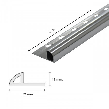 H&B. FTR-321201. คิ้วอลูมิเนียมแบบโค้ง. Polish Silver. 32*12*2000mm.
