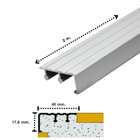 H&B. FTS-401702. จมูกบันไดอลูมิเนียม. Matt Silver. 40*17.8*2000mm.