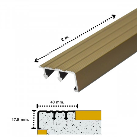 H&B. FTS-401703. จมูกบันไดอลูมิเนียม. Matt champagne. 40*17.8*2000mm.