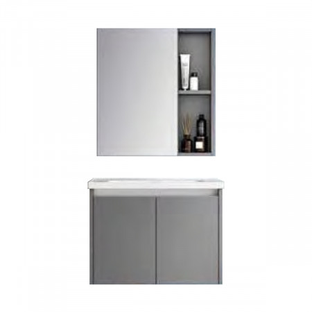 H&B.223-60 ตู้เฟอร์นิเจอร์สีเทา+อ่างเซรามิคพร้อมตู้กระจก