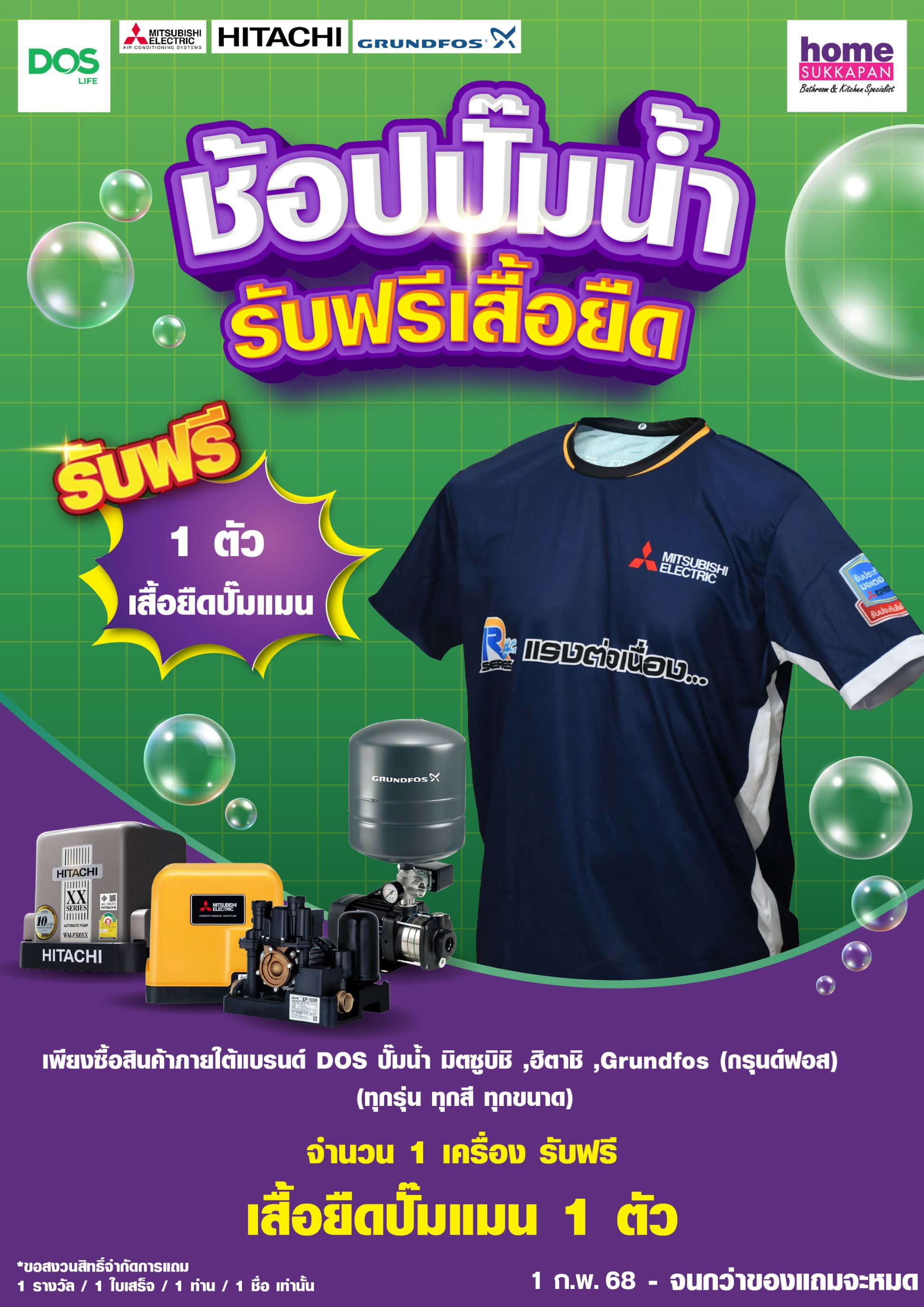 เพียงซื้อสินค้าภายใต้แบรนด์ DOS ปั๊มน้ำ มิตซูบิชิ , ฮิตาชิ , Grundfos (กรุนด์ฟอส) (ทุกรุ่น ทุกสี ทุกขนาด)