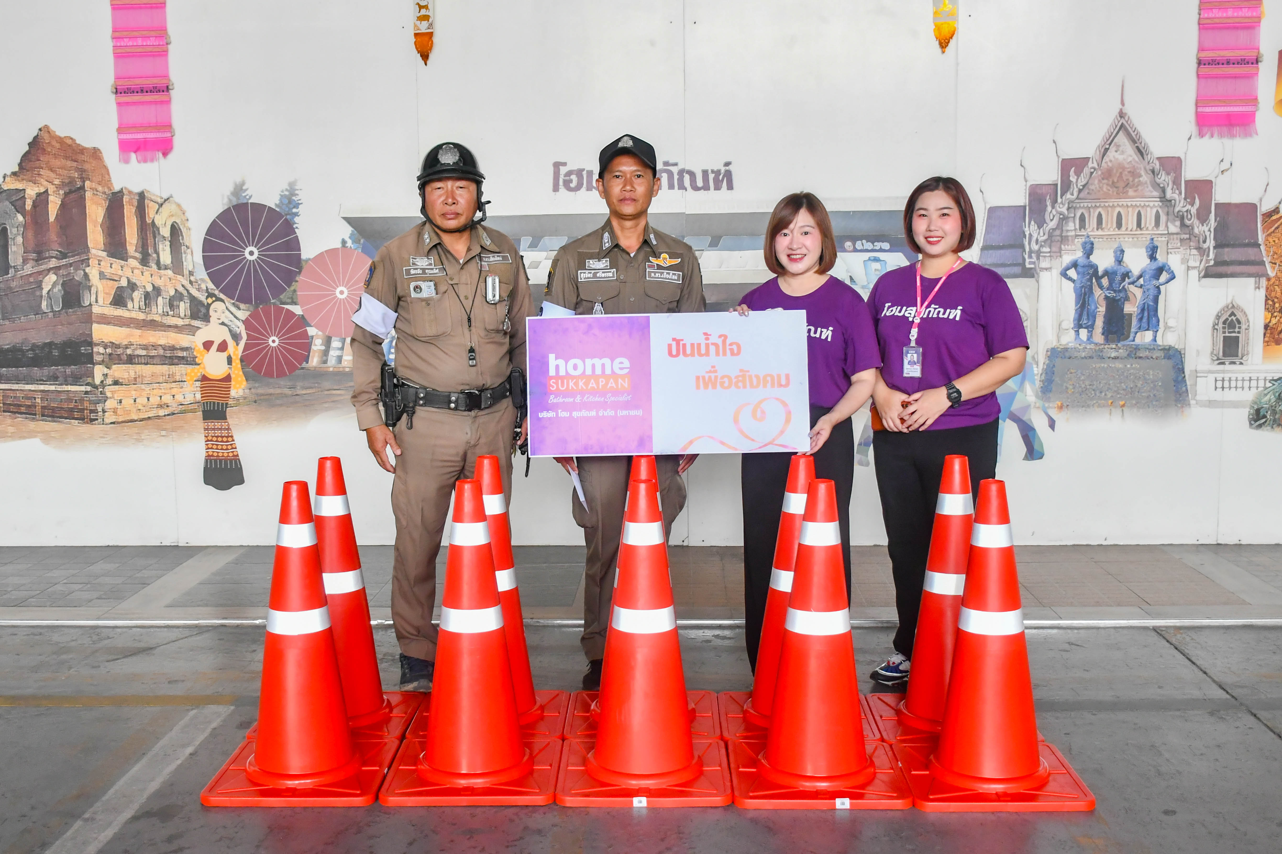 บริษัท โฮม สุขภัณฑ์ จำกัด (มหาชน) ได้ร่วมเป็นส่วนหนึ่งในการสนับสนุนกรวยยางจราจร เพื่ออำนวยความสะดวกการจราจรและป้องกันอุบัติเหตุ
