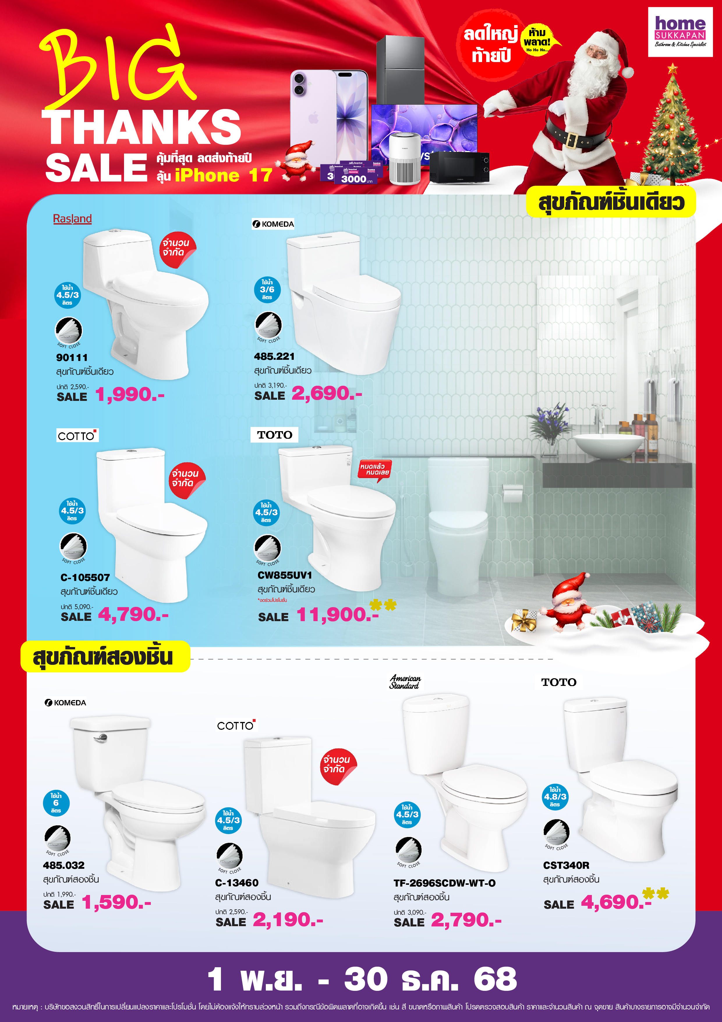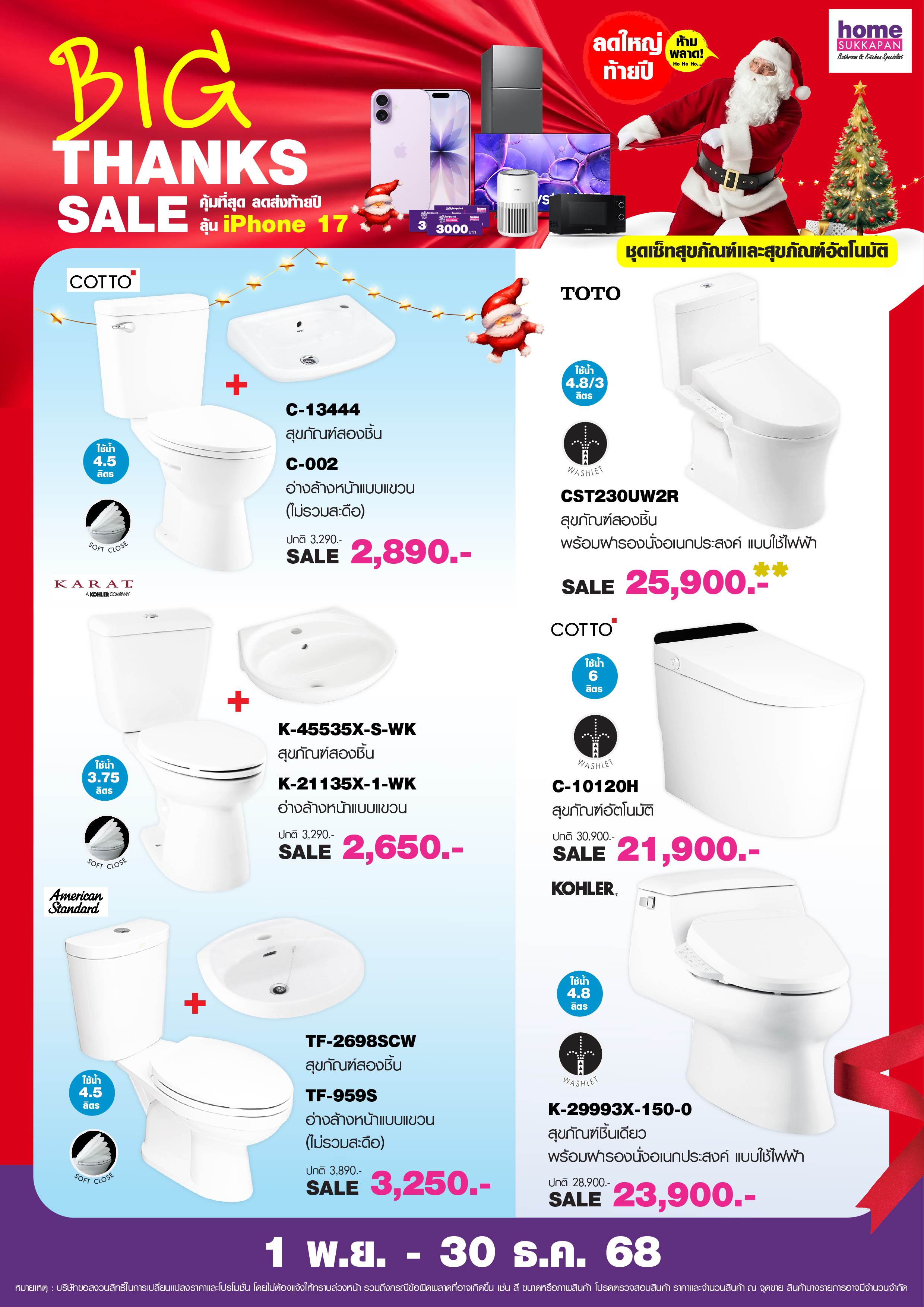 โอกาสพิเศษส่งท้ายปี ที่ลูกค้าโฮมสุขภัณฑ์ไม่ควรพลาด พบกับแคมเปญ Big Thanks Sale คุ้มที่สุดแห่งปี