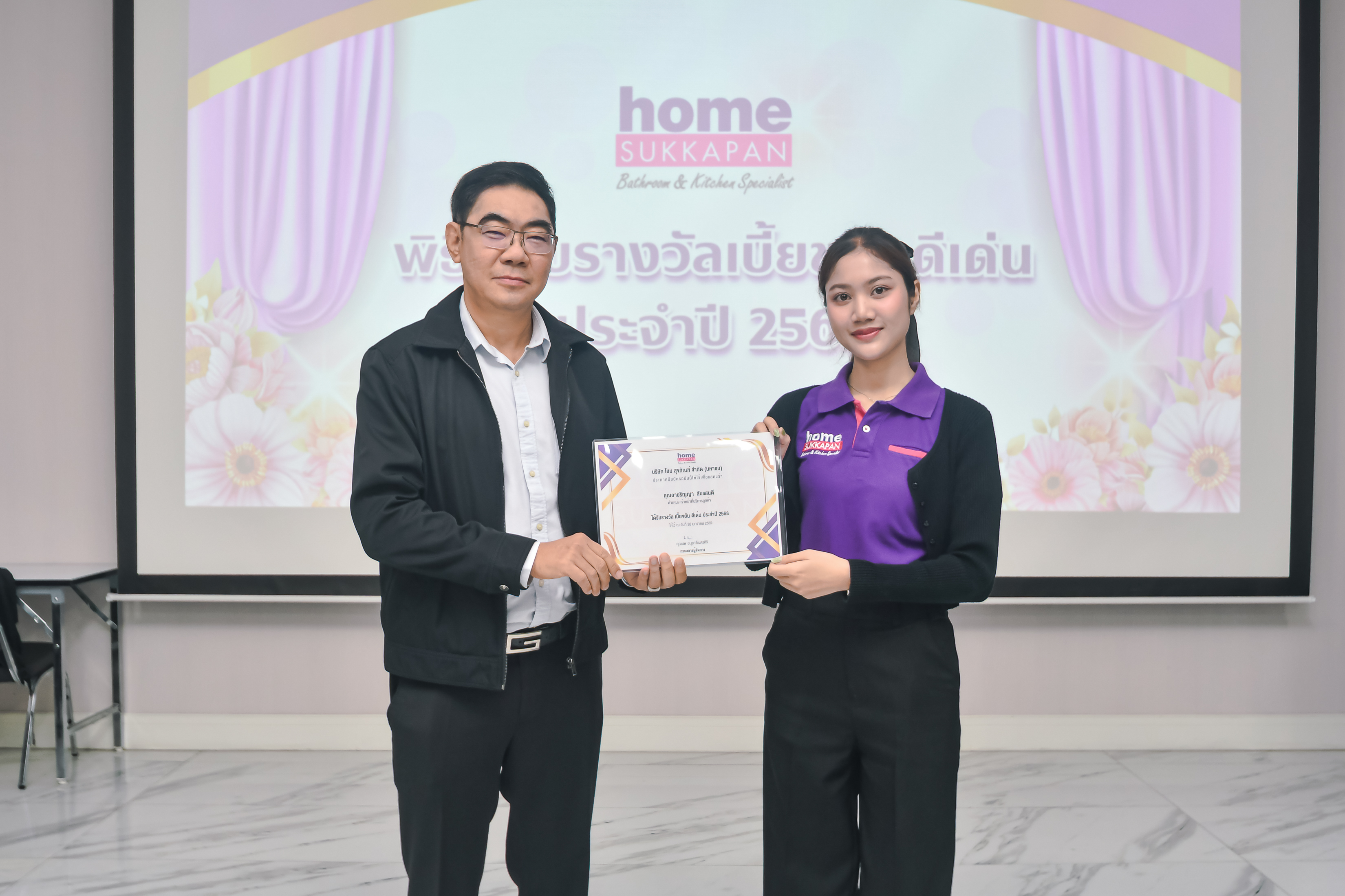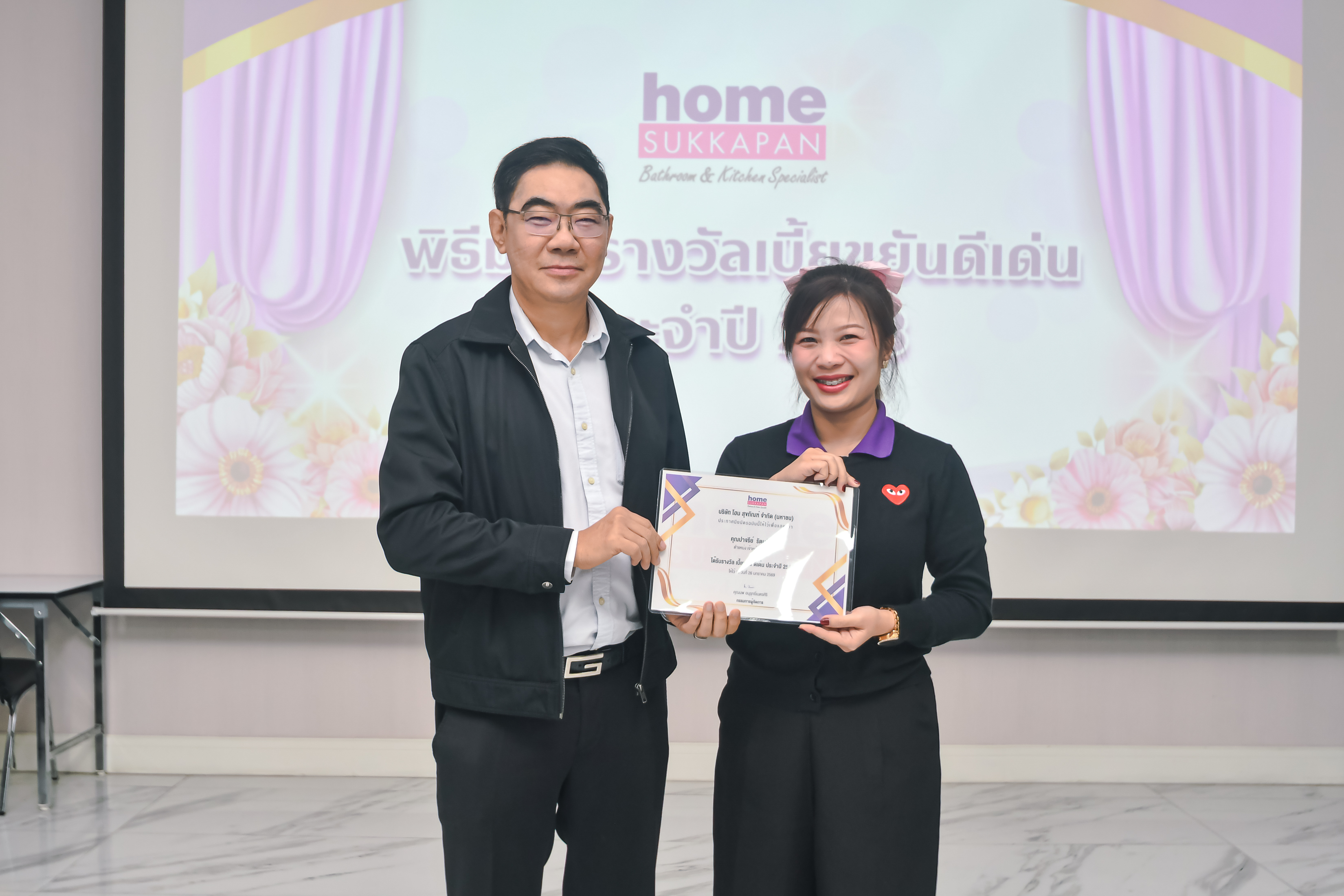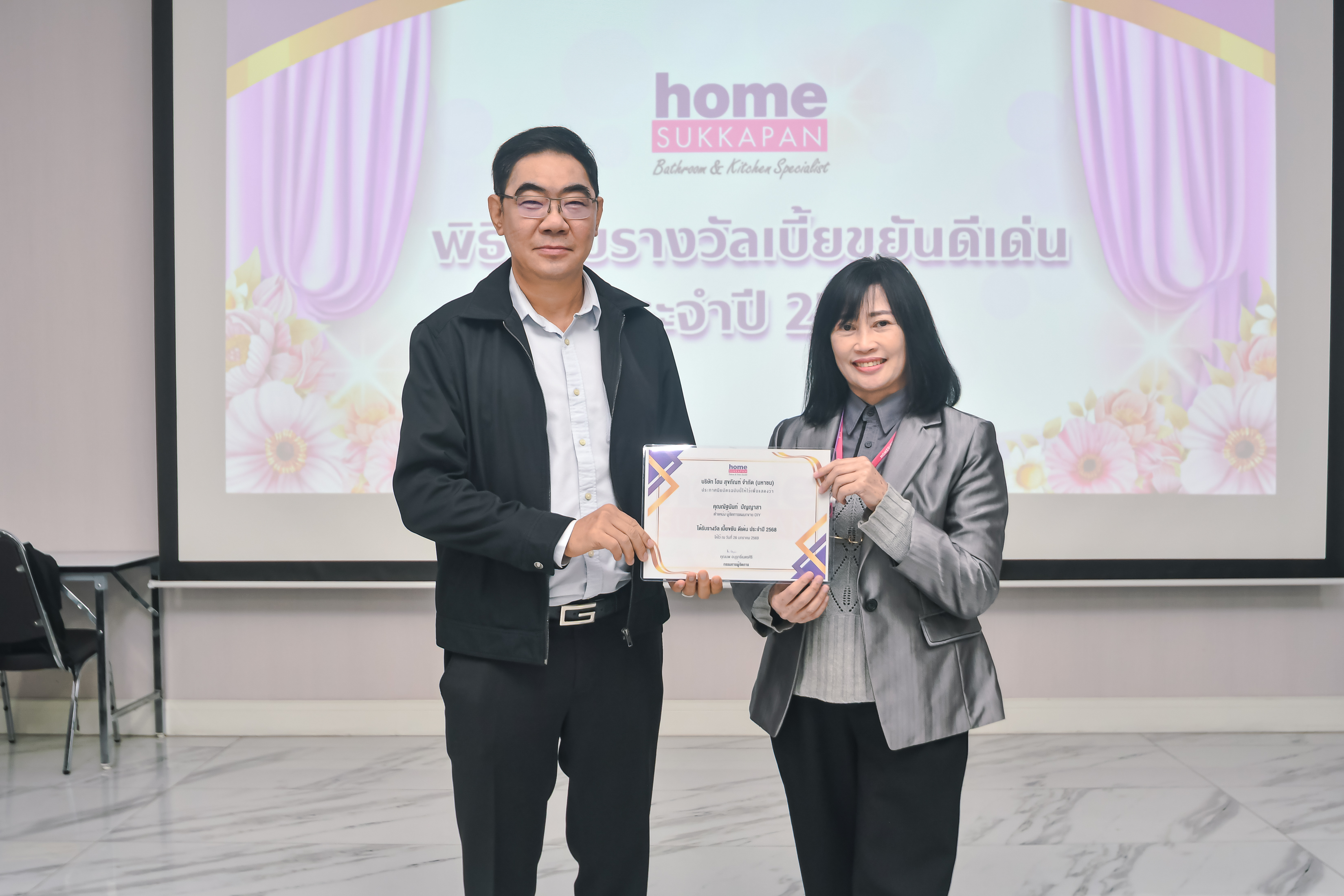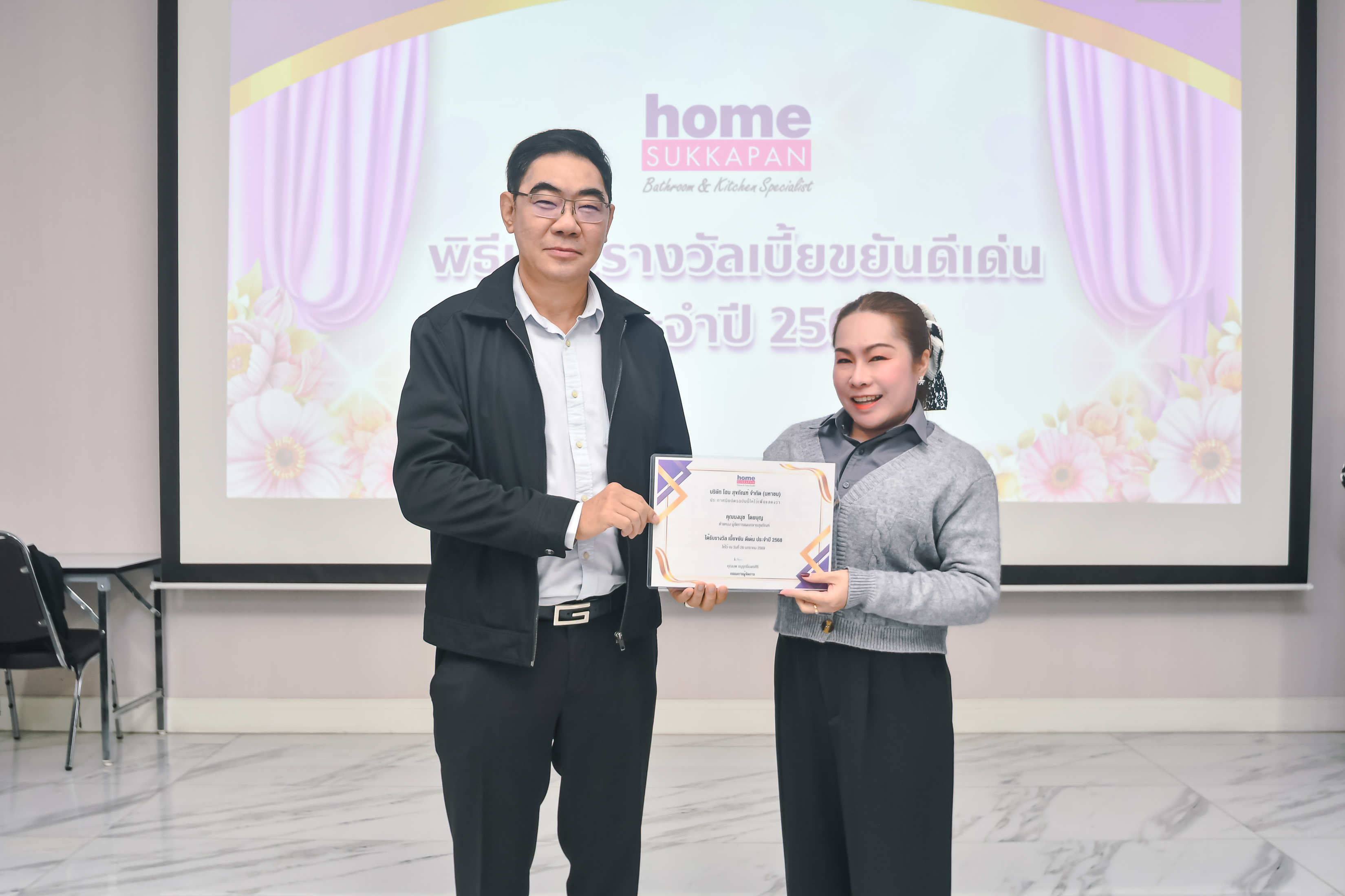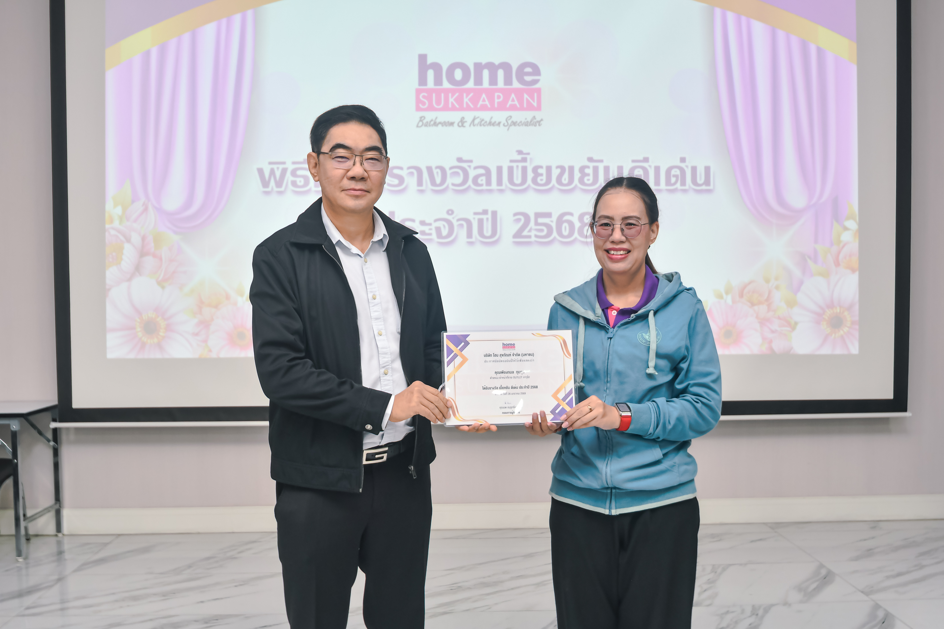 เมื่อวันที่ 26 มกราคม 2569 คุณนพ อนุรุทธิ์เนตรศิริ กรรมการผู้จัดการ บริษัท โฮม สุขภัณฑ์ จำกัด (มหาชน) ได้มอบเกียรติบัตรแก่พนักงาน