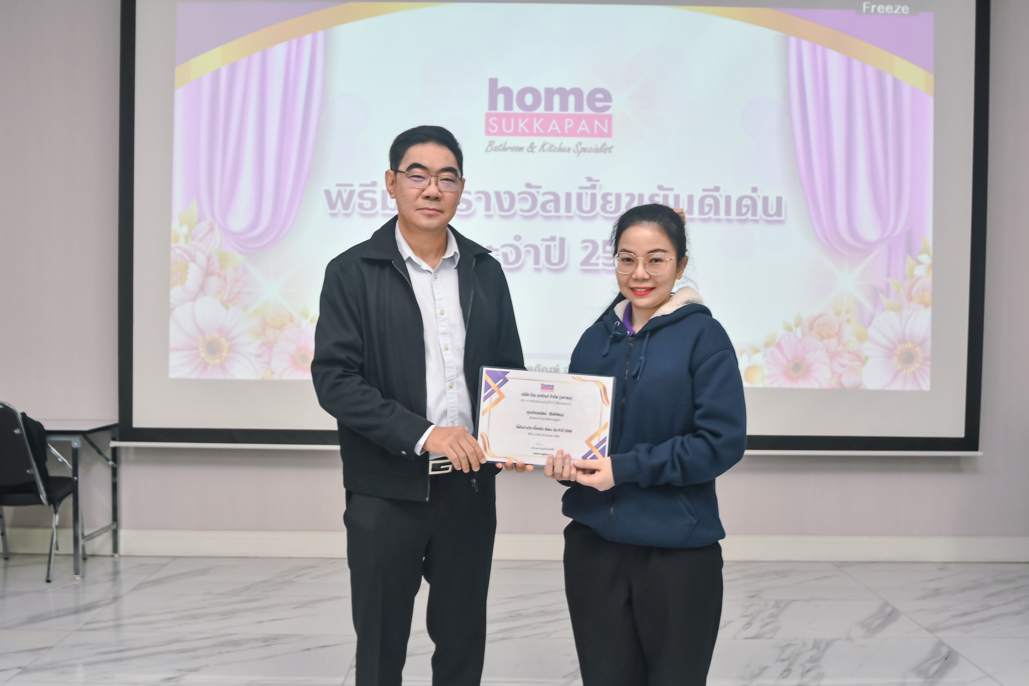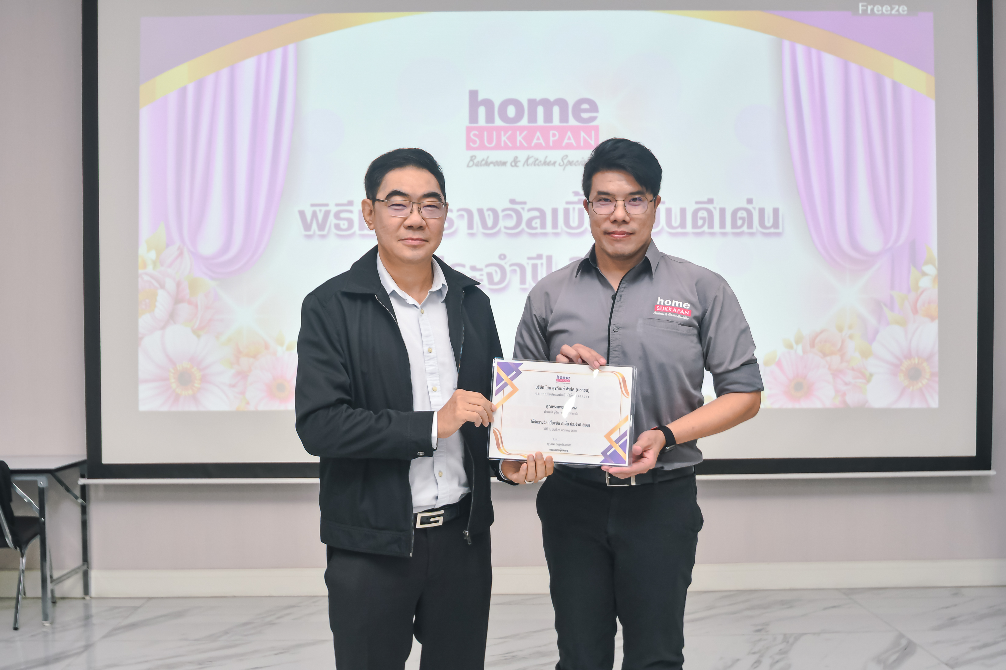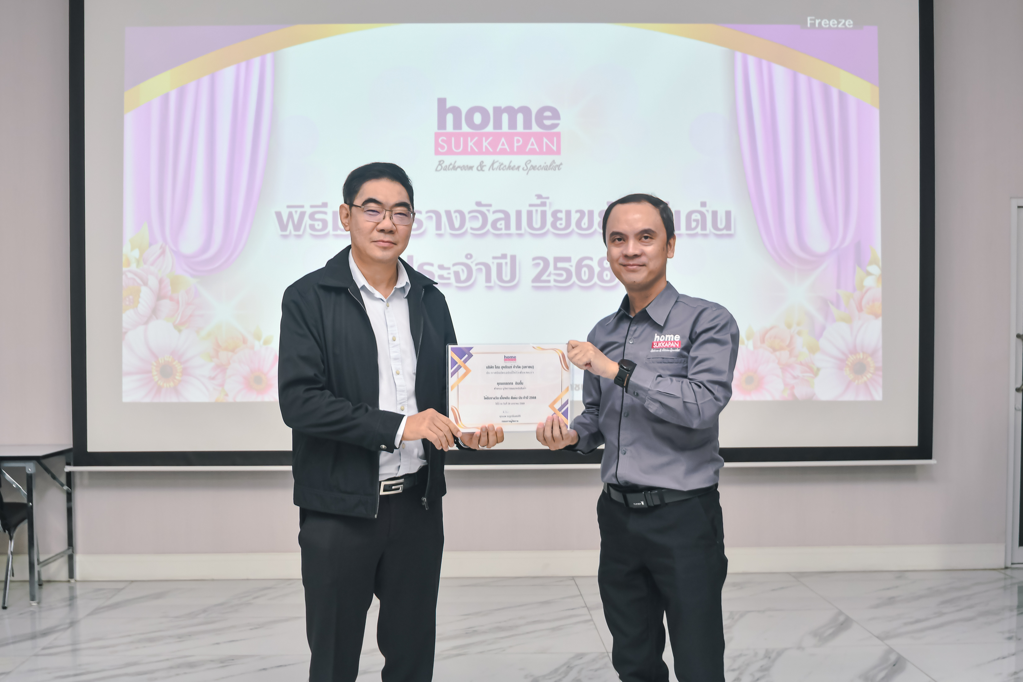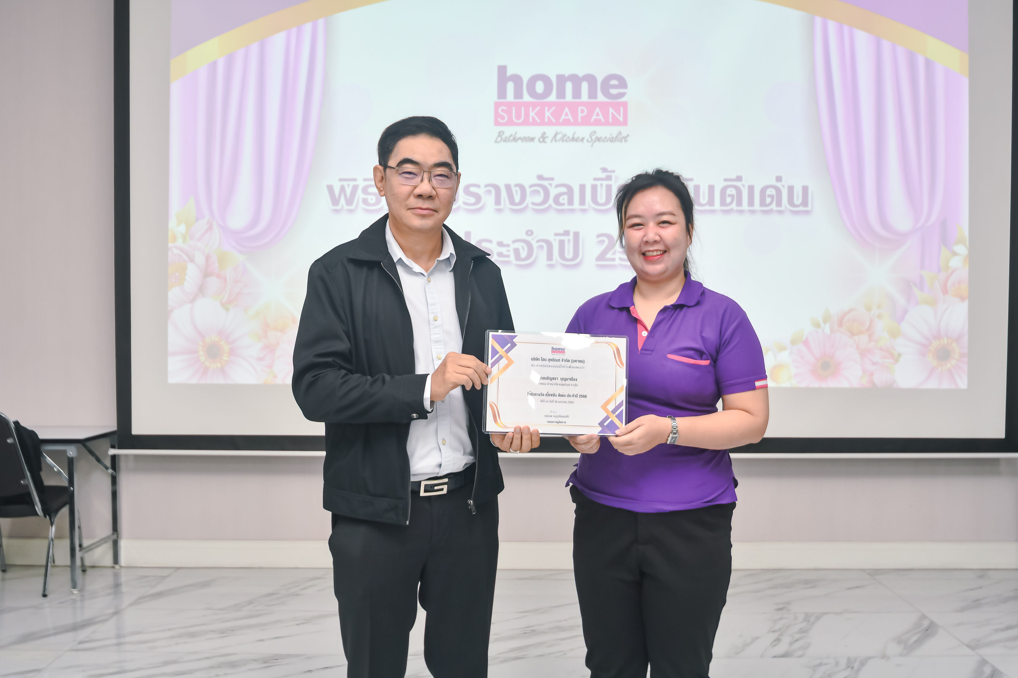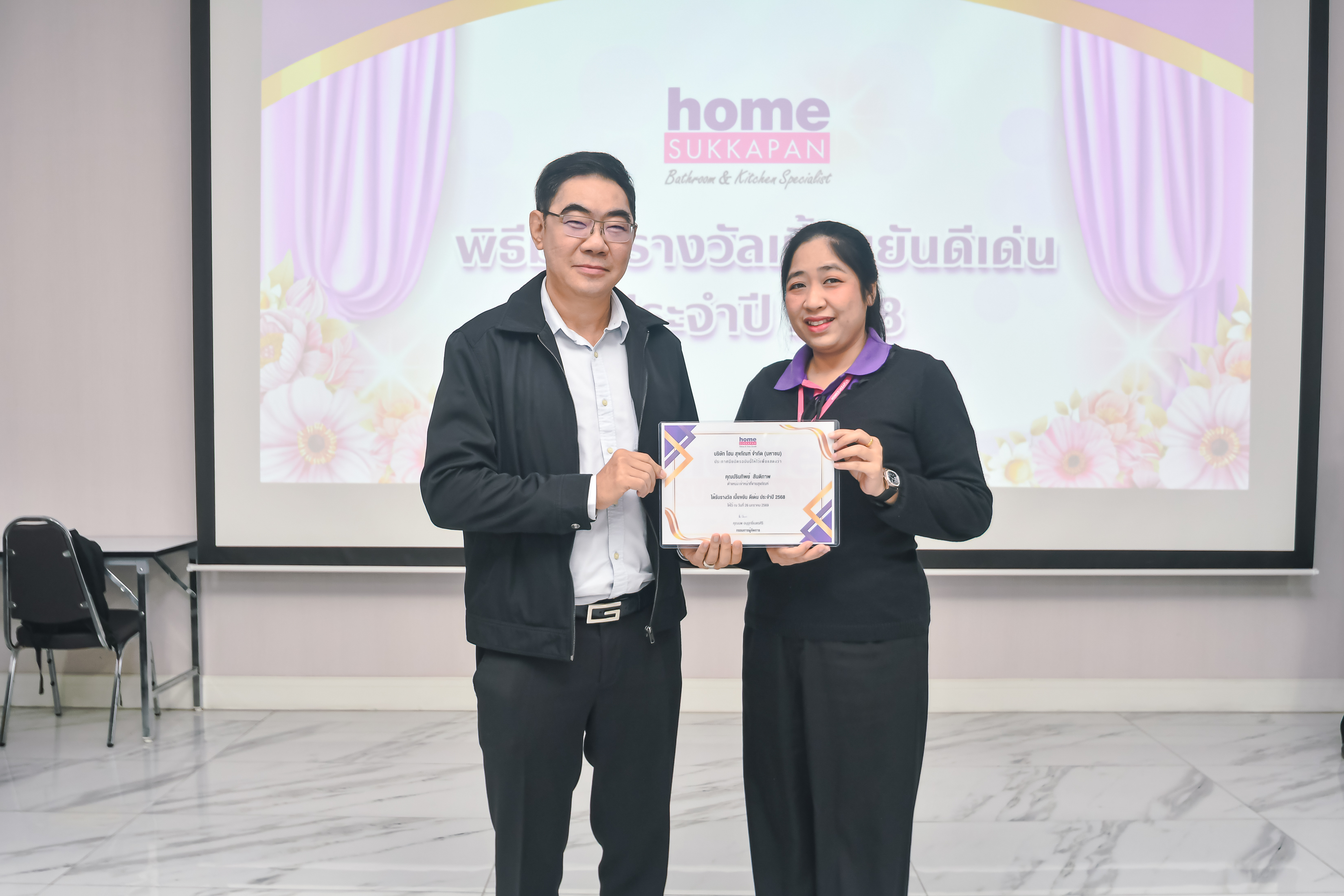 เมื่อวันที่ 26 มกราคม 2569 คุณนพ อนุรุทธิ์เนตรศิริ กรรมการผู้จัดการ บริษัท โฮม สุขภัณฑ์ จำกัด (มหาชน) ได้มอบเกียรติบัตรแก่พนักงาน