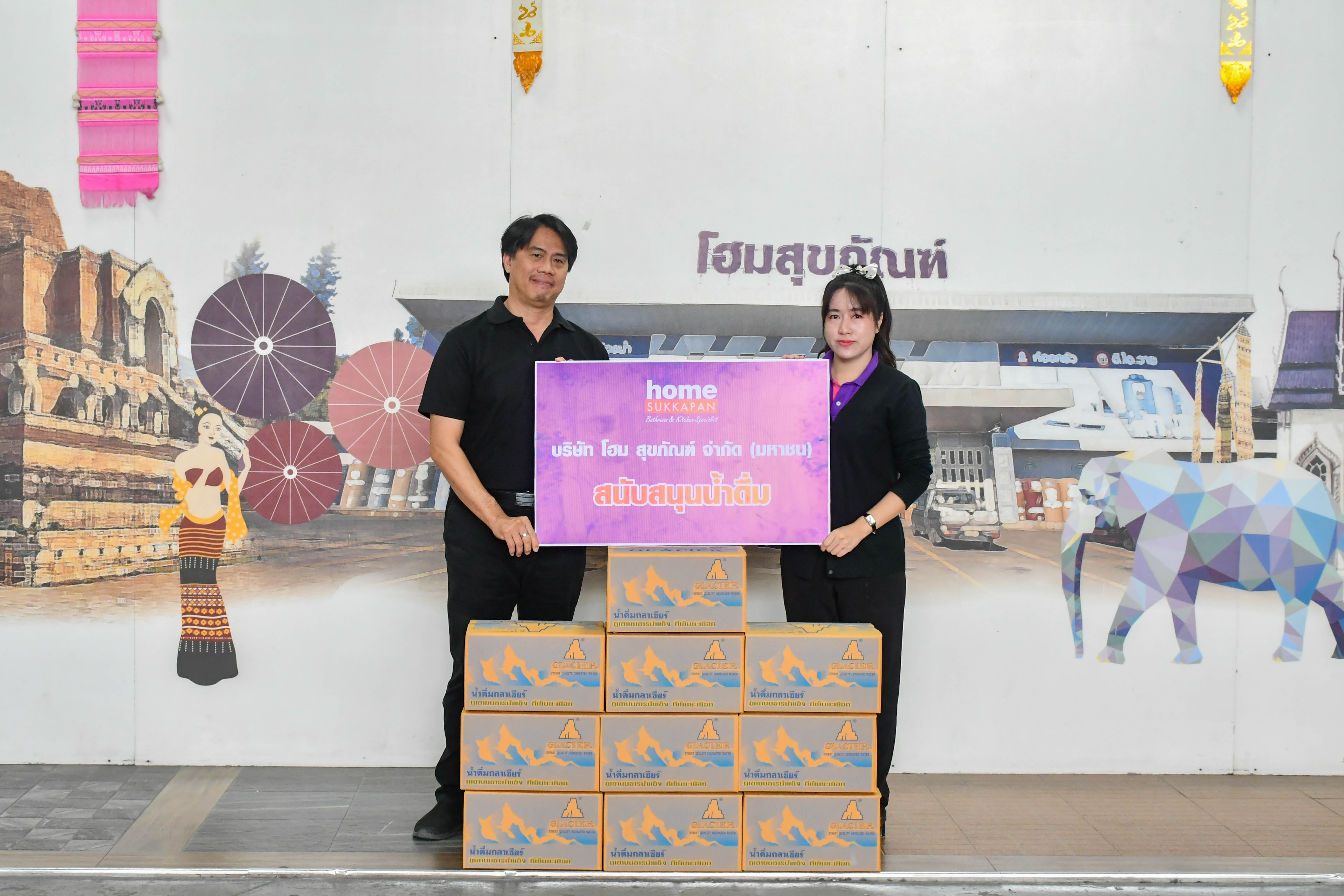 โฮมสุขภัณฑ์ ร่วมสนับสนุนน้ำดื่ม เพื่อทำกิจกรรม จัดงานฉลองสมโภช (ปอยหลวง) วัดบวกครกน้อย