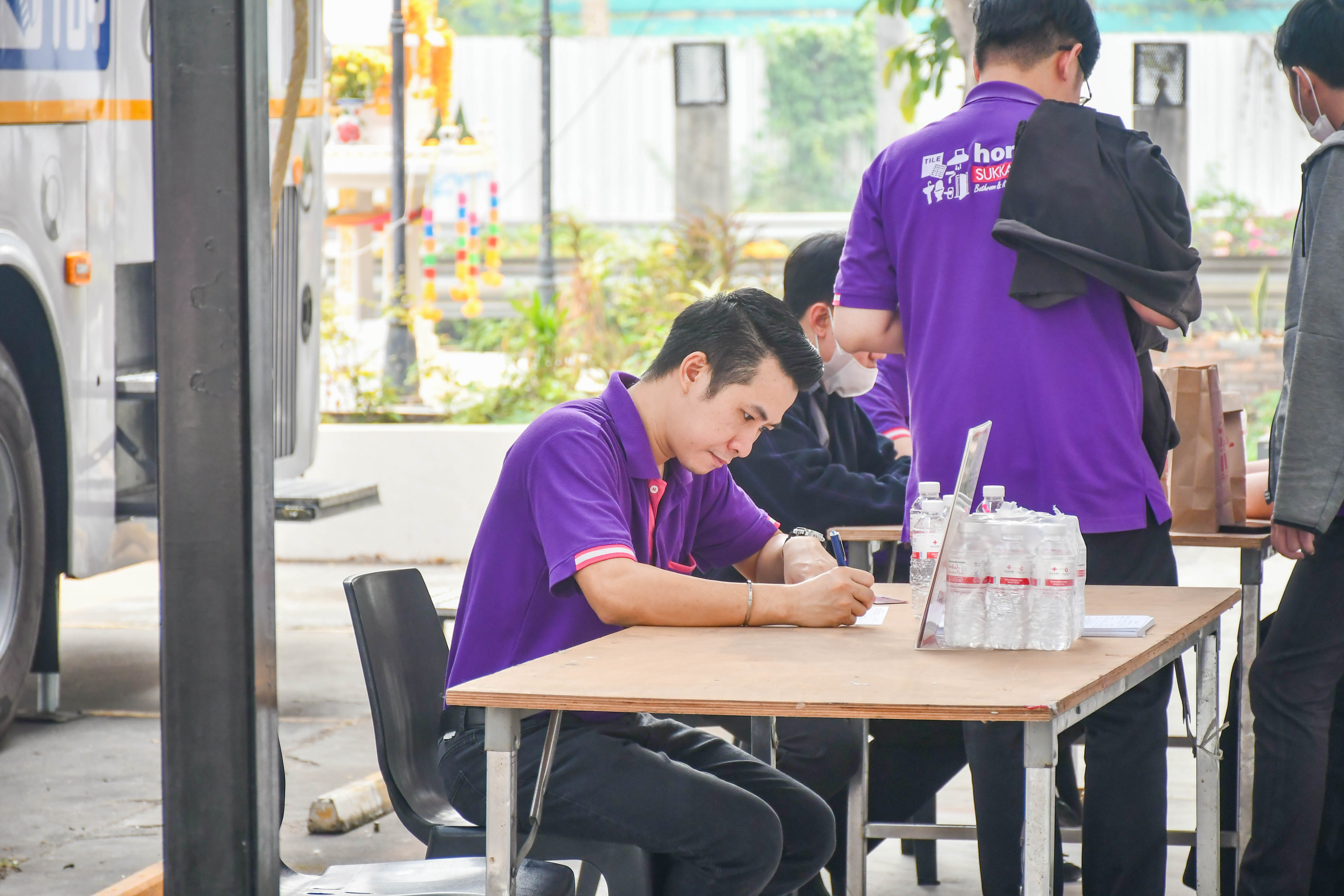 บรรยากาศภายในงานเต็มไปด้วยความอบอุ่น มีผู้มีจิตศรัทธาทยอยเดินทางมาร่วมลงทะเบียนบริจาคโลหิตกันอย่างต่อเนื่อง ตั้งแต่ช่วงเช้า โดยมีทีมเจ้าหน้าที่จากหน่วยรับบริจาคโลหิตเคลื่อนที่คอยดูแลอำนวยความสะดวกอย่างใกล้ชิด